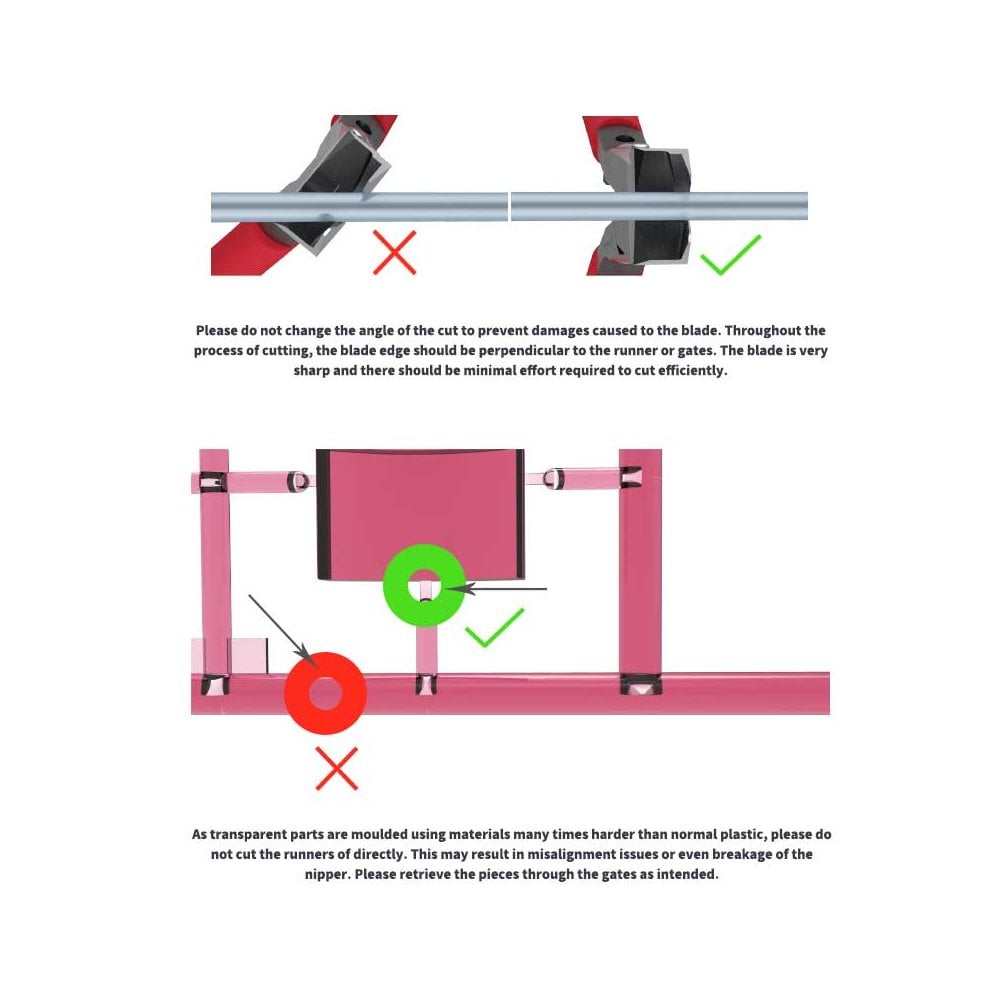 Note: This tool is designed for plastic only. Avoid cutting metal parts or thick sprues to maintain blade integrity.
