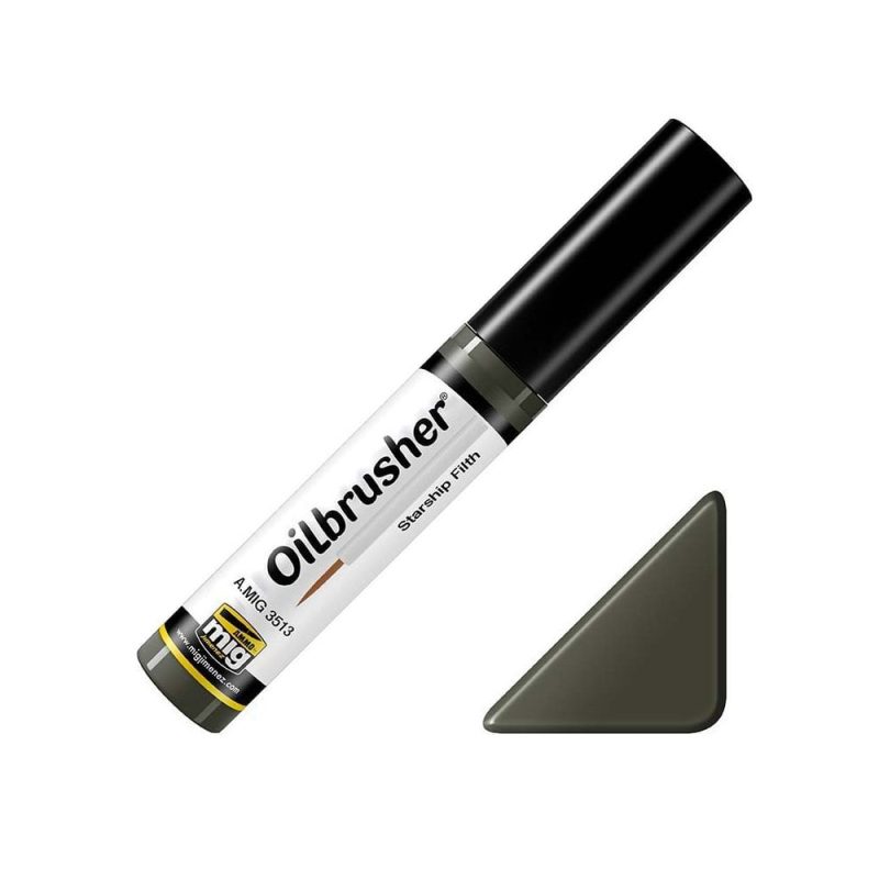 The most sought-after color by spaceship, mechas and robot aficionados; but also for dirt effects in aircraft, ships and industrial machinery. The new OILBRUSHER is the ultimate and revolutionary modeling product. OILBRUSHER contains high quality oil paint specifically formulated for modeling use, diluted to the perfect consistency to be applied straight from the jar. The cap has an exclusive built-in high-precision brush to apply the color directly onto your model, without having to put the oil paint on a palette or a piece of cardboard. This evolution prevents the oil from drying out and wasting product unnecessarily. Furthermore, the modern container includes a dispenser-cleaner system that removes the excess paint from the brush, leaving just the right amount in the tip. Traditional oil paint tubes were messy to use and difficult to open when the oil paint dries around the cap causing it to become stuck. This doesn´t happen with the OILBRUSHER, it is always clean and always stable. Besides all of these advantages, this revolutionary design also saves product and cost in the long run, particularly when considering OILBRUSHER is less expensive than traditional oil paints in the market. The OILBRUSHER color range includes the most common shades used in scale models, avoiding unnecessary tones that would remain otherwise mostly unused on the bench. Panting with oils has never been so fun and simple. OILBRUSHER is your oil paint with built-in applicator brush; a unique and exclusive AMMO product.