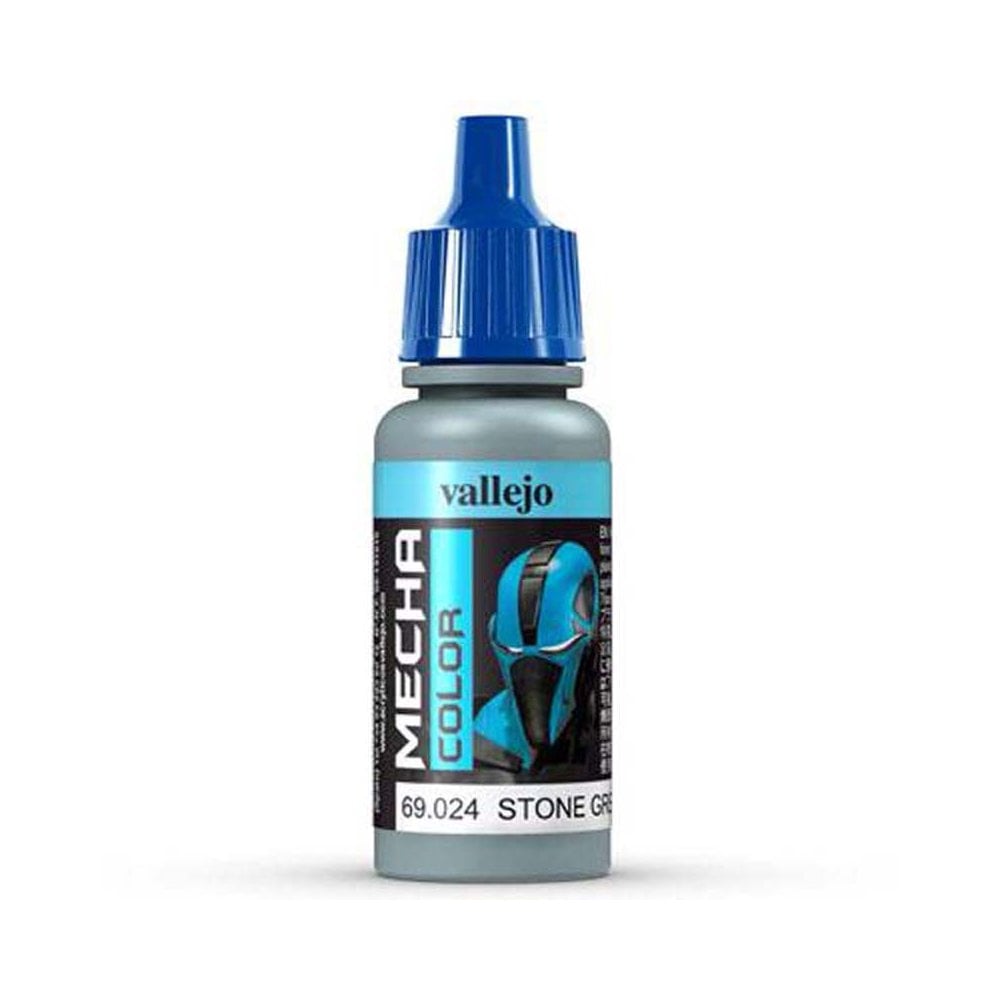 Stone Grey 69.024 Vallejo Mecha Color New formula acrylic colors with a satin finish, extra resistant and impact proof especially designed for airbrushing surfaces exposed to aggressive manipulation. The advanced formulation contains a revolutionary component which guarantees exceptional adherence on even the most difficult surfaces, and offers great resistance to rough handling, impact, friction, scratches, etc. Once dry, the Mecha surface looks the same as the original plastic of the model, while yet the smallest details of the original remain clearly visible. The color range includes primers as well as special varnishes ‚¨ also with an exclusive formulation- and a series of colors for aging and weathering effects. It is recommended to apply the Mecha colors in several layers on the previously primed surface; a few hours after application the colors will have dried to form a homogenous coating of extraordinary strength and resistance. Mecha Color can be airbrushed directly or diluted with Vallejo Airbrush Thinner or Flow Improver, and the colors can also be applied by brush. The compressor adjustment recommended is 15 ‚¨ 20 PSI o 0.5 to 1 kg. For best airbrush maintenance we recommend using the Vallejo Airbrush Cleaner.Safety: Mecha Color is not flammable, and does not contain solvents. Please see also certified safety information of the product on the Safety page.Packaging: Mecha Color is available in 17 ml./0.57 fl.oz. bottles (with eyedropper). Mecha Primer and Mecha Varnish are also available in 60 ml./2.02 fl.oz. and 200 ml./6.76 fl.oz. bottles (with flip top and eyedropper).