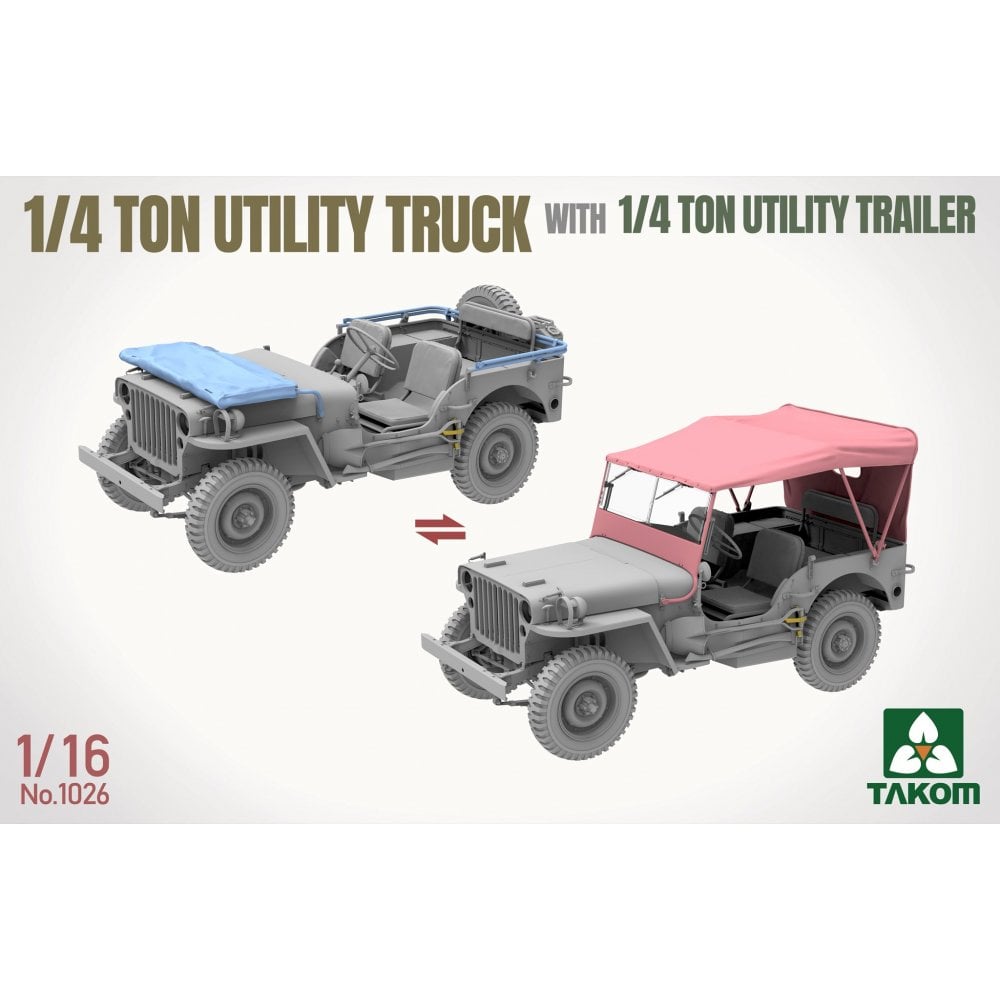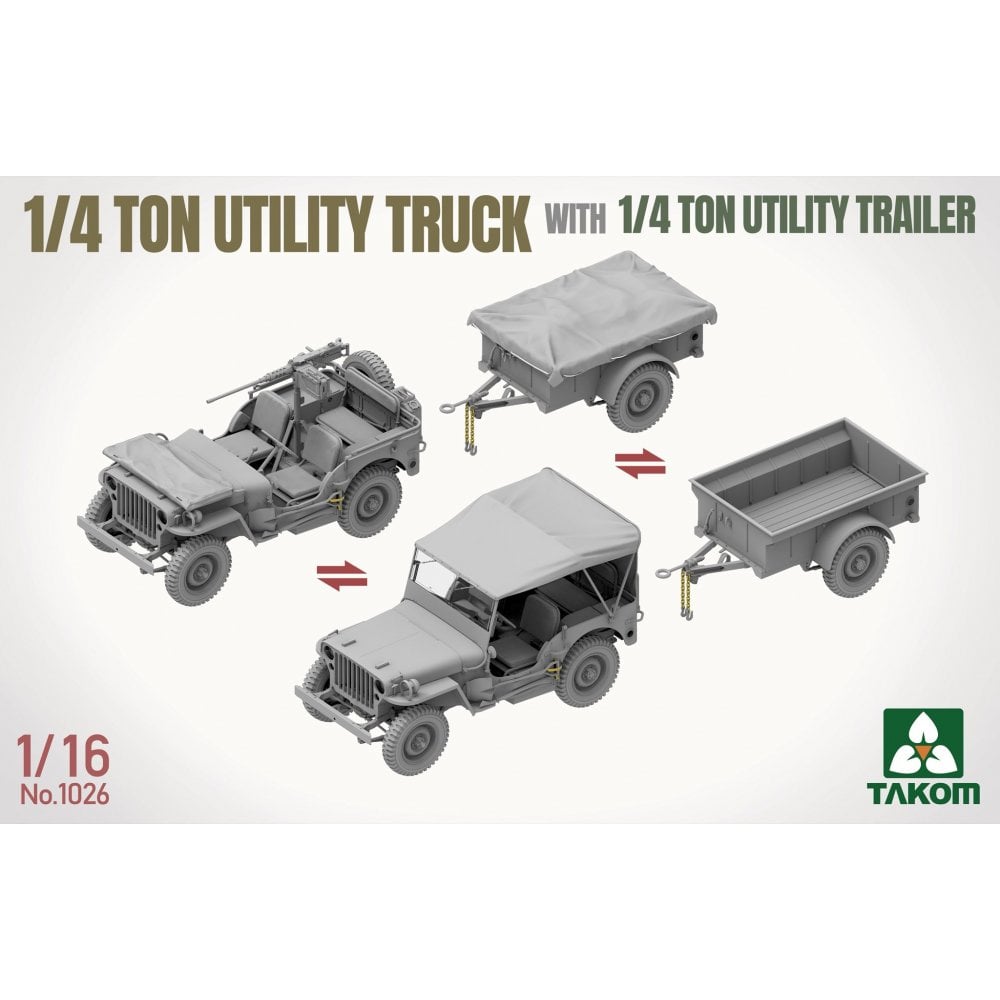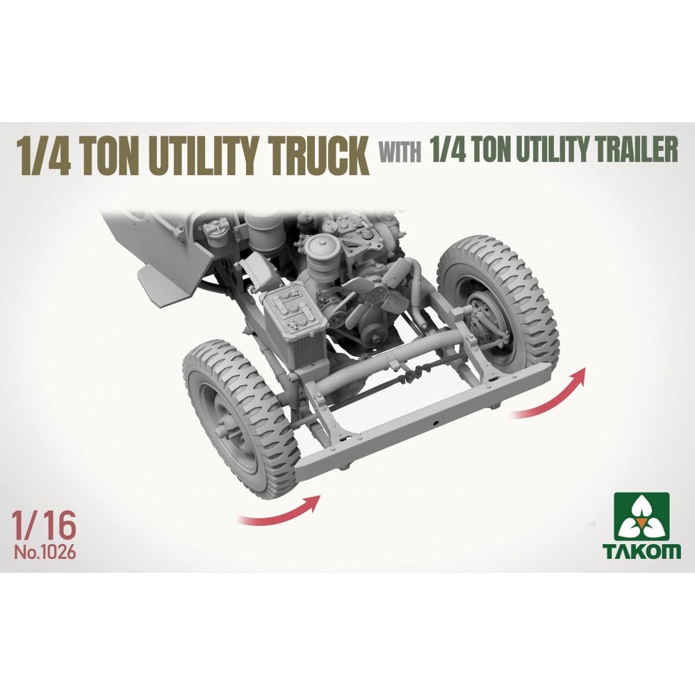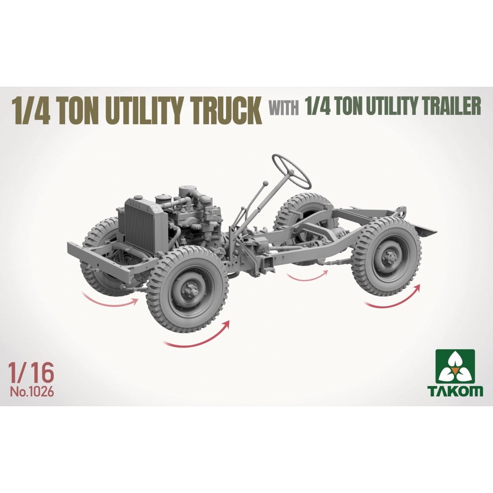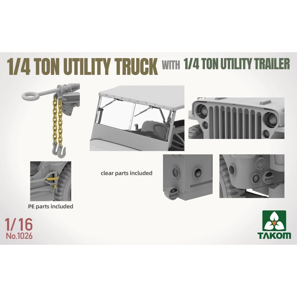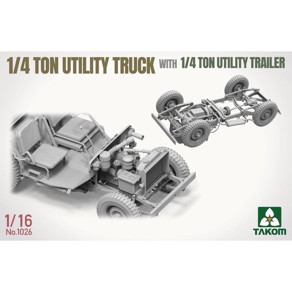 This 1/16 scale 1/4 Ton Utility Truck and Utility Trailer set from Takom recreates one of the most recognisable light vehicles of WWII. Compact, reliable, and endlessly adaptable, the Jeep became the backbone of Allied mobility, serving in everything from reconnaissance and command roles to supply and casualty evacuation.