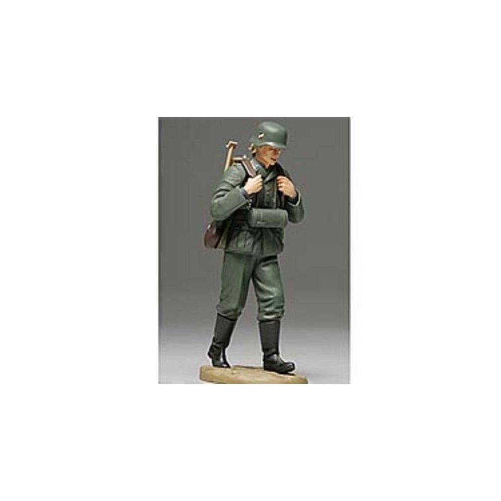 This 1/16 scale Tamiya figure kit portrays a WWII German machine gun ammo-belt loader in a realistic combat pose, ideal for pairing with other figures or diorama scenes. The subject is dressed in period-accurate field gear, capturing the detail and functionality of German infantry equipment used during the war. With a well-balanced pose and sharp sculpting, this figure enhances the authenticity of any WWII display.
