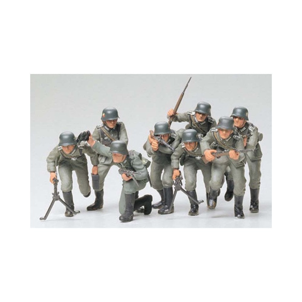 This 1/35 scale figure set from Tamiya depicts German assault troops from WWII, captured in dynamic action poses. Each figure is sculpted with exceptional attention to detail, featuring accurate uniforms, field gear, and personal weapons of the era. The set is ideal for adding realism and character to historical dioramas.