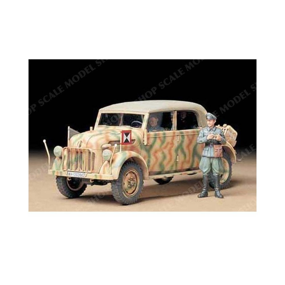 This 1/35 scale Tamiya model kit depicts the German Steyr Kommandeurwagen, a command vehicle based on the Steyr 1500A/01 military transport. Produced under the 1940 “Schell Programme” vehicle standardisation, the Kommandeurwagen was designed to provide comfort and mobility for high-ranking officers during WWII. Built on the same chassis as the 1500A truck, it featured an 8-cylinder, 85hp petrol engine, a four-speed gearbox with reverse, torsion bar front suspension, and leaf spring rear suspension, capable of reaching speeds up to 100km/h on roads.