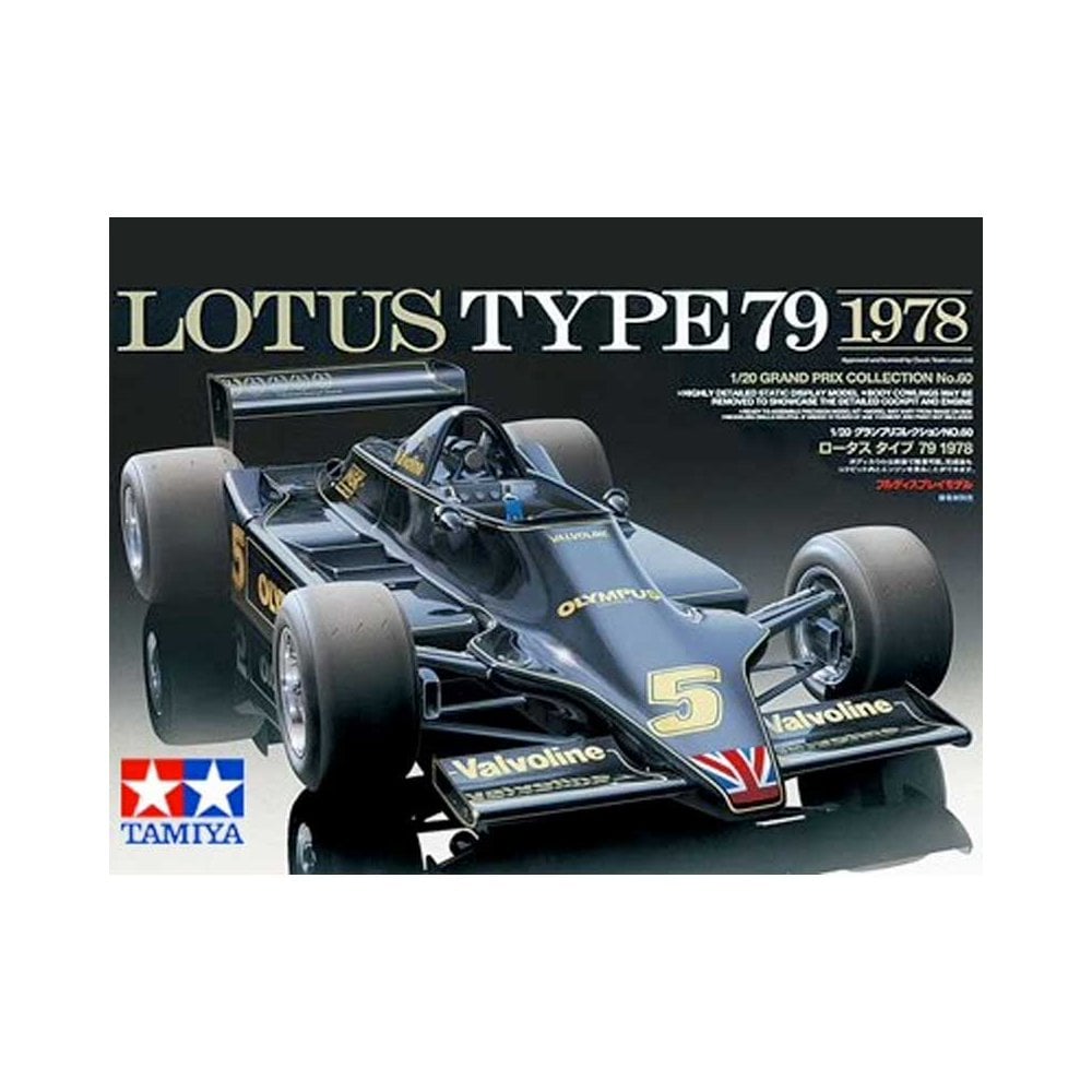 The Tamiya Lotus Type 79 1978 in 1/20 scale accurately recreates the championship-winning Formula One car driven by Mario Andretti and Ronnie Peterson. This model captures the distinctive ground-effect bodywork, fine suspension components, and detailed cockpit that made the Type 79 a dominant force in the 1978 season.