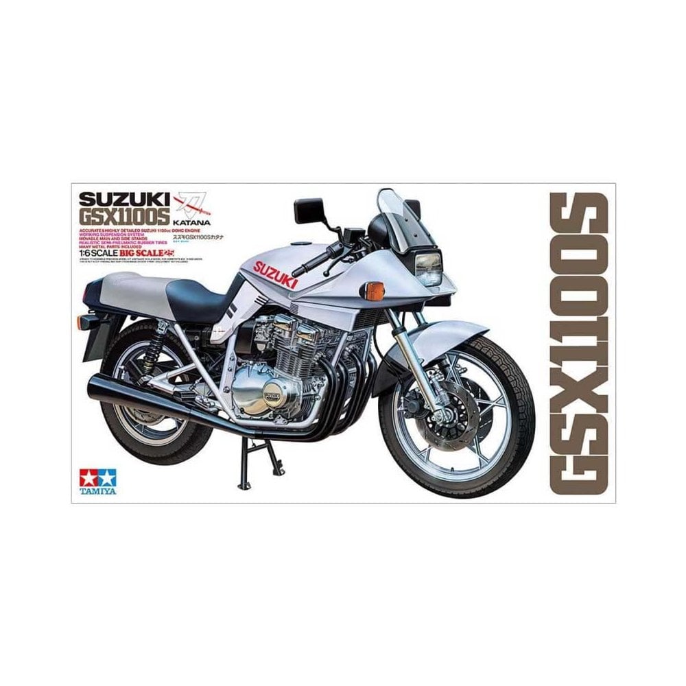 The Tamiya Suzuki GSX1100S Katana (1/6) captures the bold styling and engineering excellence of one of Japan’s most iconic motorcycles. This large-scale model offers an intricate assembly experience, ideal for modellers who appreciate both historical significance and precision mechanics.