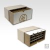 The drawer is delivered in kit form and has to be bonded with wood glue (not included). It contains perfectly fitted parts and assembly instructions. Smaller parts may be machined with interconnecting stubs which must be removed before assembly, just like plastic model parts from a sprue tree. The drawer is not equipped with magnets.