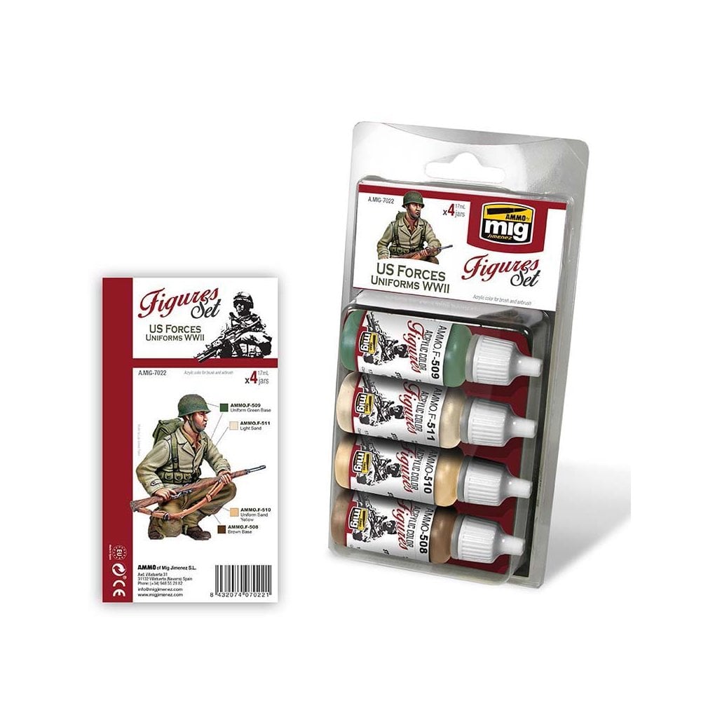US Forces Uniforms WWII Figures Set Ammo Mig Jimenez A.MIG-7022The new AMMO range of acrylic paints for figures has been designed to make your painting sessions a more enjoyable experience thanks to the speed and simplicity of use; new materials for new techniques, more accessible to all modelers.All of the colours in this series can be mixed with one another and with the full range of AMMO acrylics. This line of colours is perfect for the usual layering and blending techniques used in figure painting as well as the most recent mixed blending techniques. Formulated for maximum performance both with brush and airbrush. Water soluble, odourless, non-flammable and non-toxic.AMMOF508 BROWN BASE FS-30108