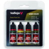 This set from Vallejo is designed for creating dead, sickly, and non-human skin tones on miniatures and figures. It is particularly suited to undead subjects, zombies, and characters influenced by dark or corrupted environments.