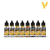 This Vallejo Model Air Metallic Colors set brings together eight carefully selected metallic shades designed for airbrushing straight from the bottle. The paints are pre-thinned and formulated for smooth, consistent flow, making them suitable for detailed work on scale models, figures and diorama elements where metallic finishes need to look clean and controlled rather than heavy or grainy.