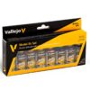 This Vallejo Model Air Metallic Colors set brings together eight carefully selected metallic shades designed for airbrushing straight from the bottle. The paints are pre-thinned and formulated for smooth, consistent flow, making them suitable for detailed work on scale models, figures and diorama elements where metallic finishes need to look clean and controlled rather than heavy or grainy.