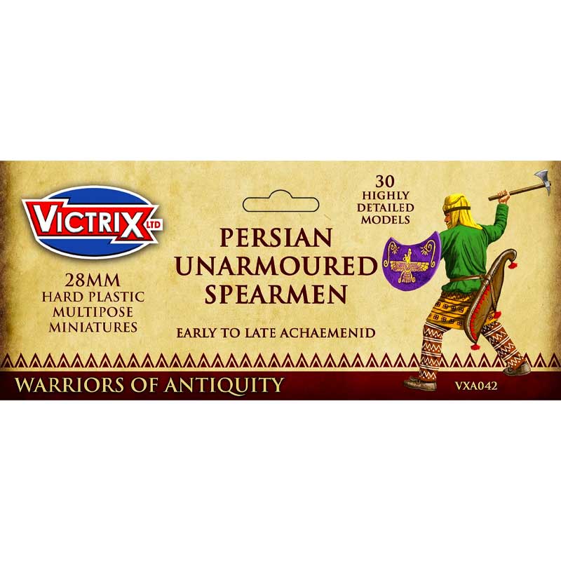 This 28mm hard plastic set from Victrix features 30 highly detailed Persian Unarmoured Spearmen, ideal for forming the defensive core of any Achaemenid army. Suitable for both Early and Late Persian forces, these figures are designed to hold the line using the classic combination of spear and spara—large wicker shields that formed a protective barrier against enemy advances.