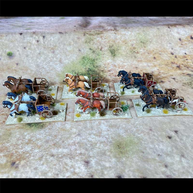 A dynamic addition to any ancient army, perfect for creating fast-moving strike units or dramatic tabletop centrepieces.