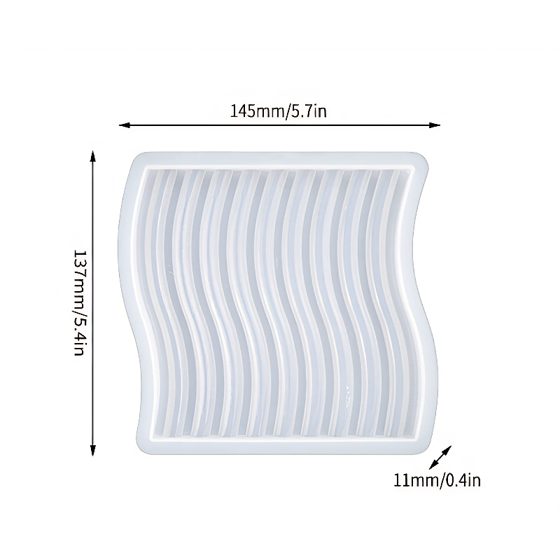 This silicone mould is designed for casting a square tray with a flowing wavy ribbed surface. The curved rib pattern adds movement and texture while maintaining a clean, structured tray shape.