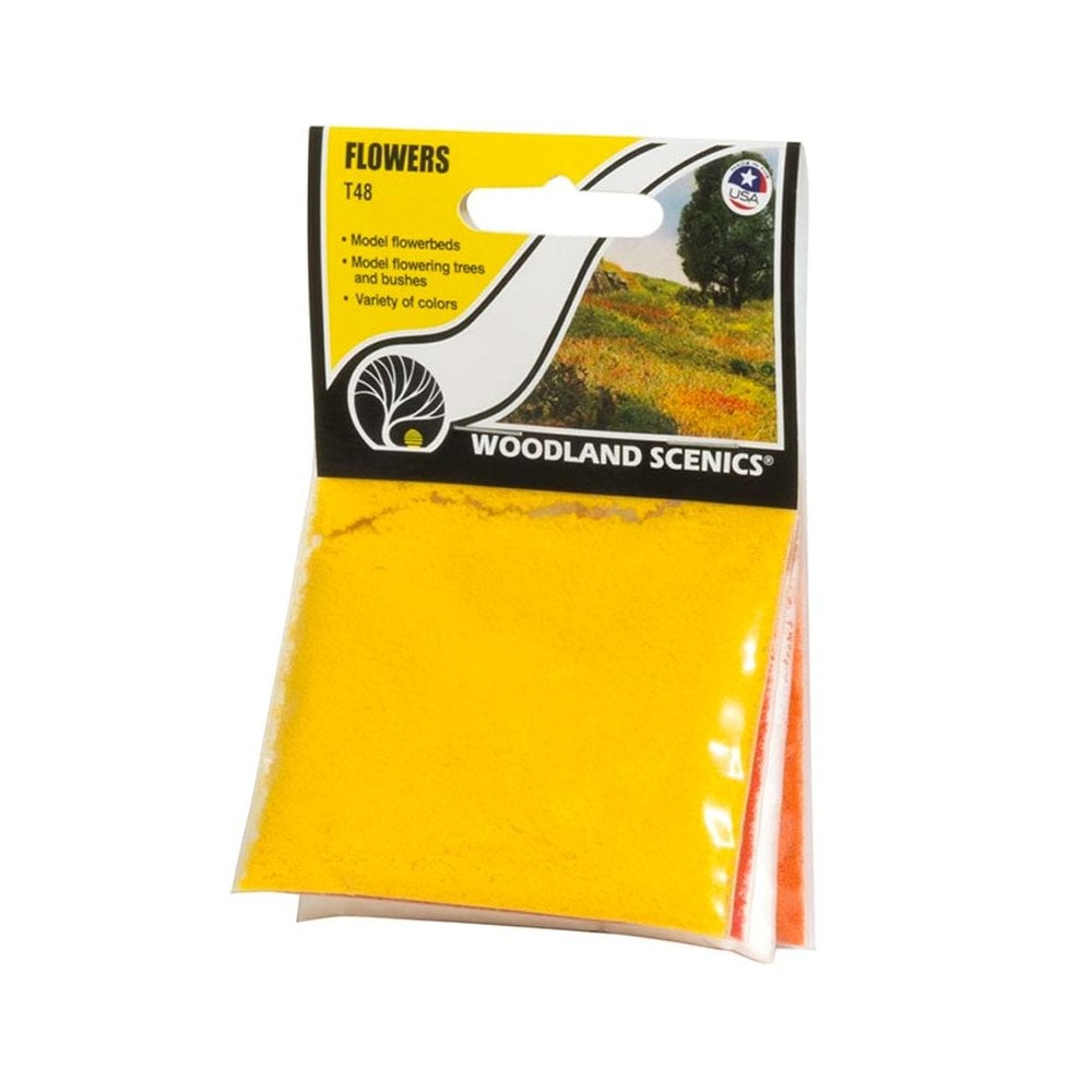 Woodland Scenics Flowers Four Colours WT48 is a vibrant assortment of red, yellow, white, and blue flower clusters, perfect for bringing colourful contrast to model scenery. These detailed accents offer quick and effective floral enhancement to any terrain layout or display.