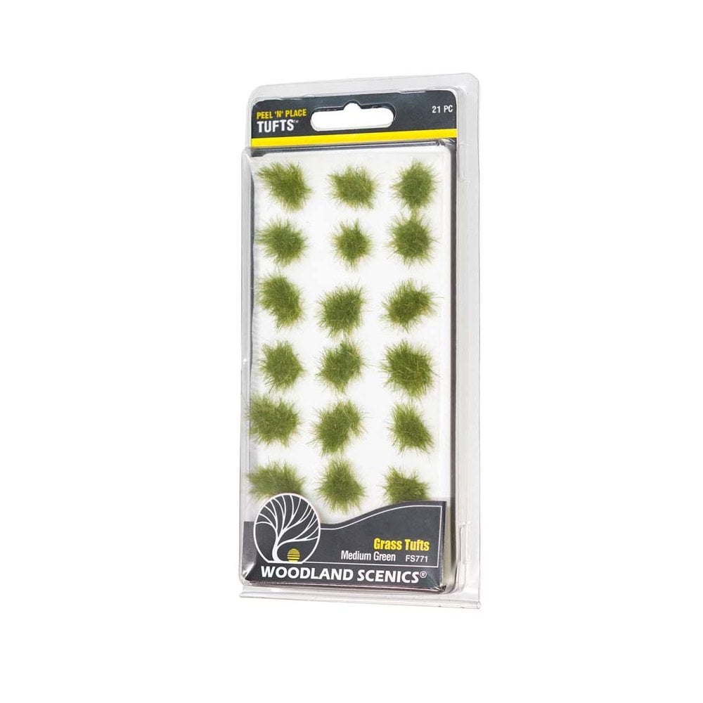 Woodland Scenics Medium Green Grass Tufts are ideal for replicating natural ground cover on any scale model layout. These self-adhesive tufts add dimension and texture with minimal effort, perfect for blending scenes or highlighting features such as roadsides, embankments, and clearings.