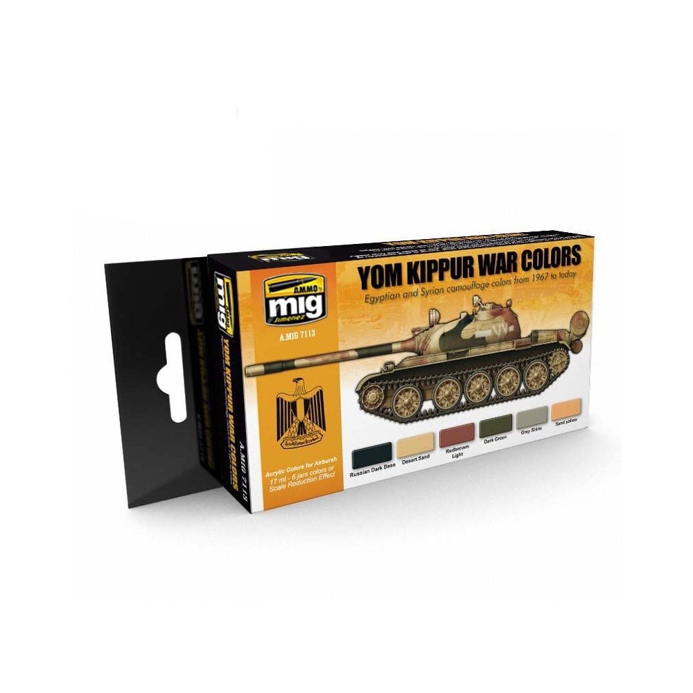 Acrylic set with the appropriate colors for painting Syrian and Egyptian vehicles from 1967 to present day; especially those used in the Yom Kippur War in 1973. The colors in this set are completely researched, allowing modellers to paint attractive Arab tanks camouflages without complex mixtures. All products are acrylic and are formulated for maximum performance both with brush or airbrush and the Scale Effect Reduction will allow us to apply the correct color on our models. Water soluble, odorless and non-toxic. Shake well before each use. We recommend MIG -2000 Acrylic Thinner for a correct thinning. Dries completely in 24 hours. Includes colors: A.MIG 029 DESERT SAND A.MIG 030 SAND YELLOW A.MIG 911 GREY SHINE A.MIG 914 RED BROWN LIGHT A.MIG 915 DARK GREEN A.MIG 931 RUSSIAN DARK BASE